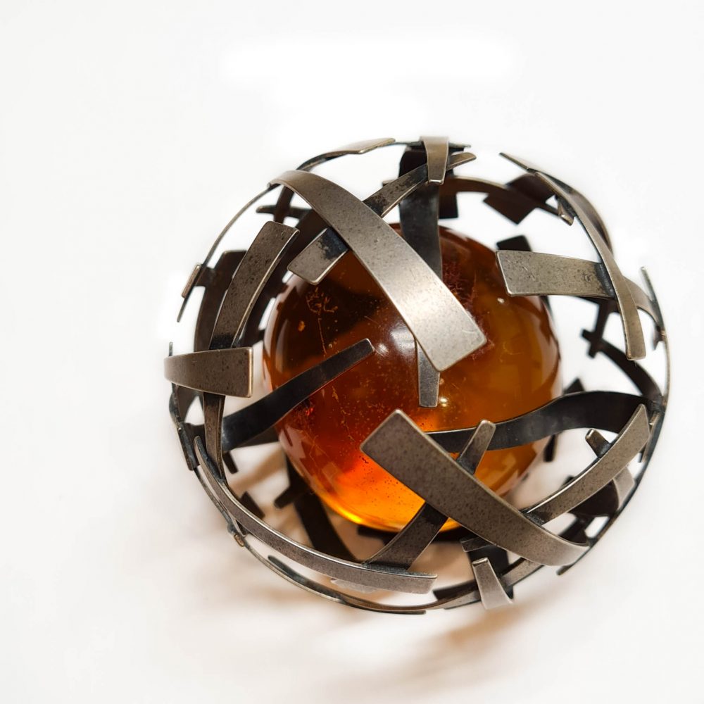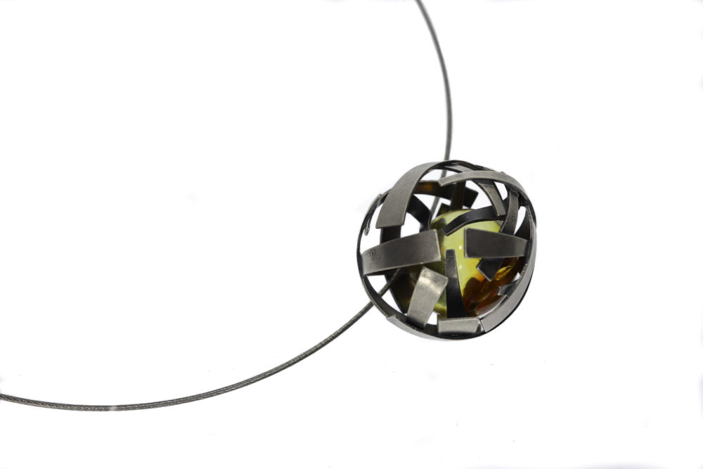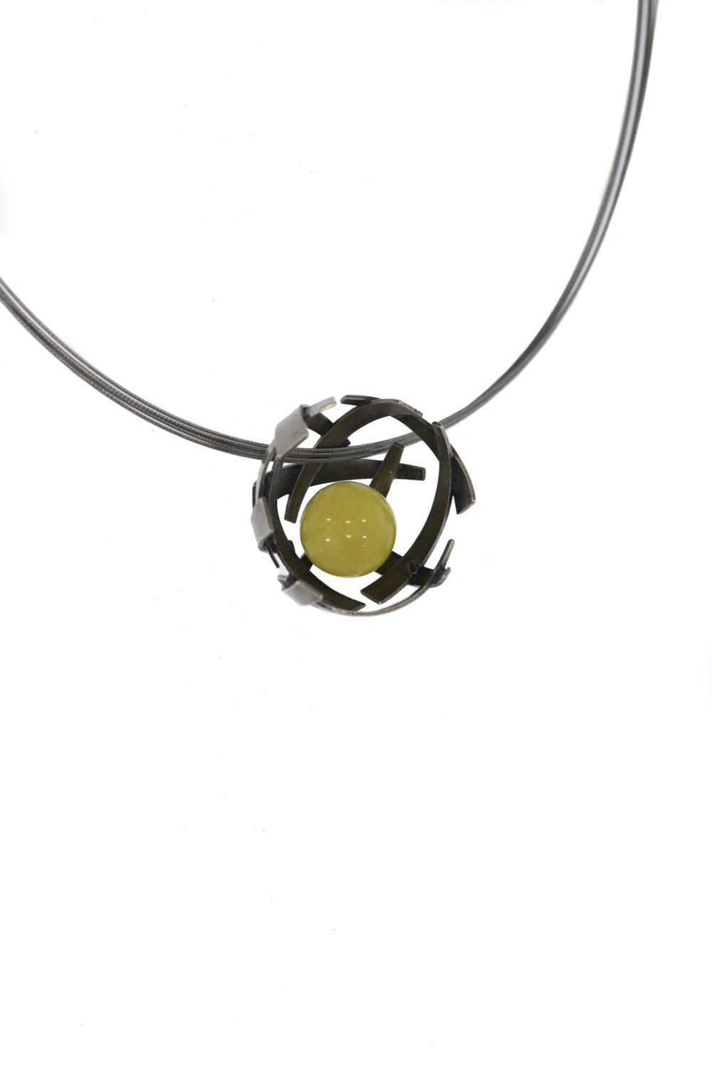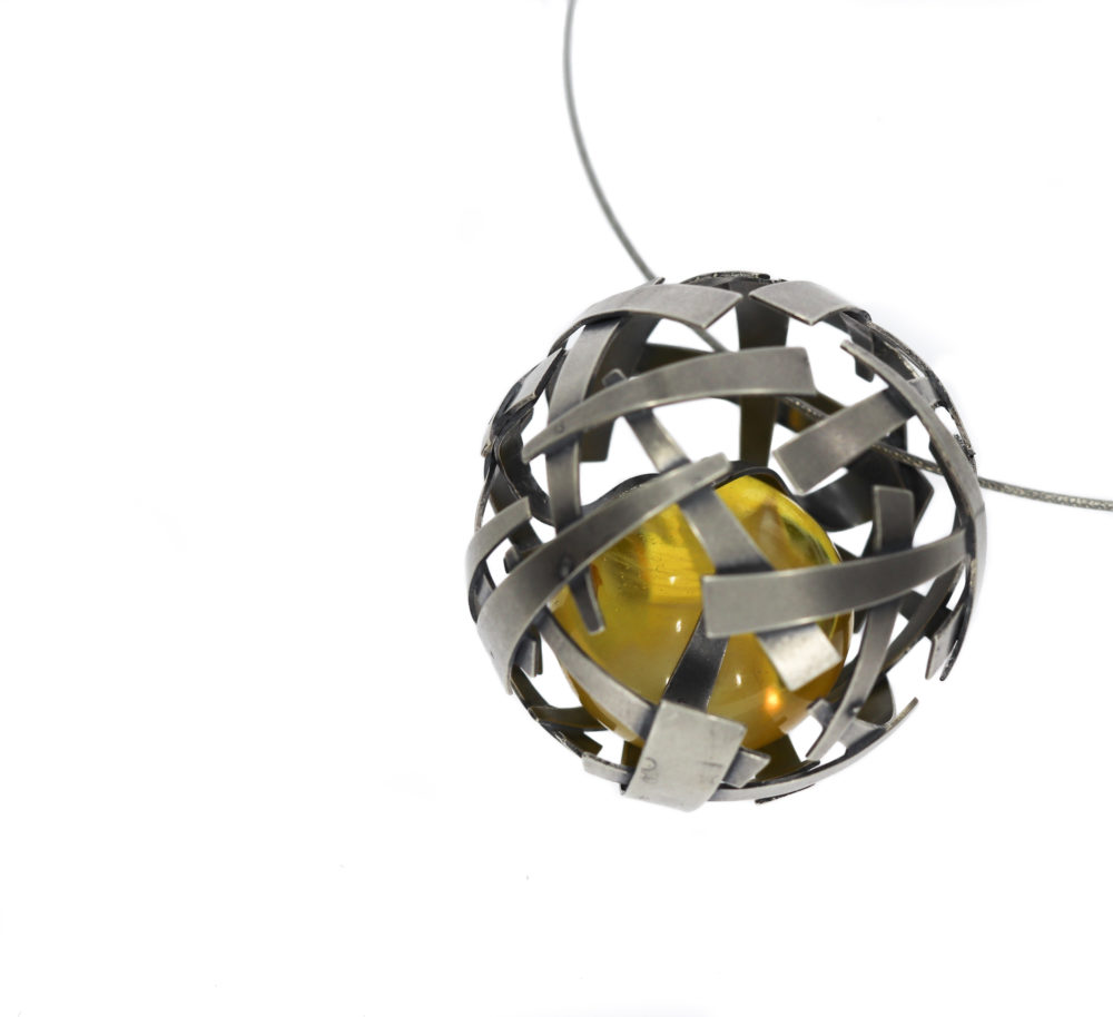 Ich konstrukcja oparta jest nie o geometrię, lecz o naturalny, instynktowny sposób działania (w jaki np. ptaki budują swoje gwiazda). Elementy są swobodnie ułożone, całość jednak jest zorganizowana, tworząc określony kształt. Umieszczony wewnątrz kuli bursztyn zachowuje naturalny charakter. Kolekcję wisiorów w różnych rozmiarach uzupełniają pierścionki.